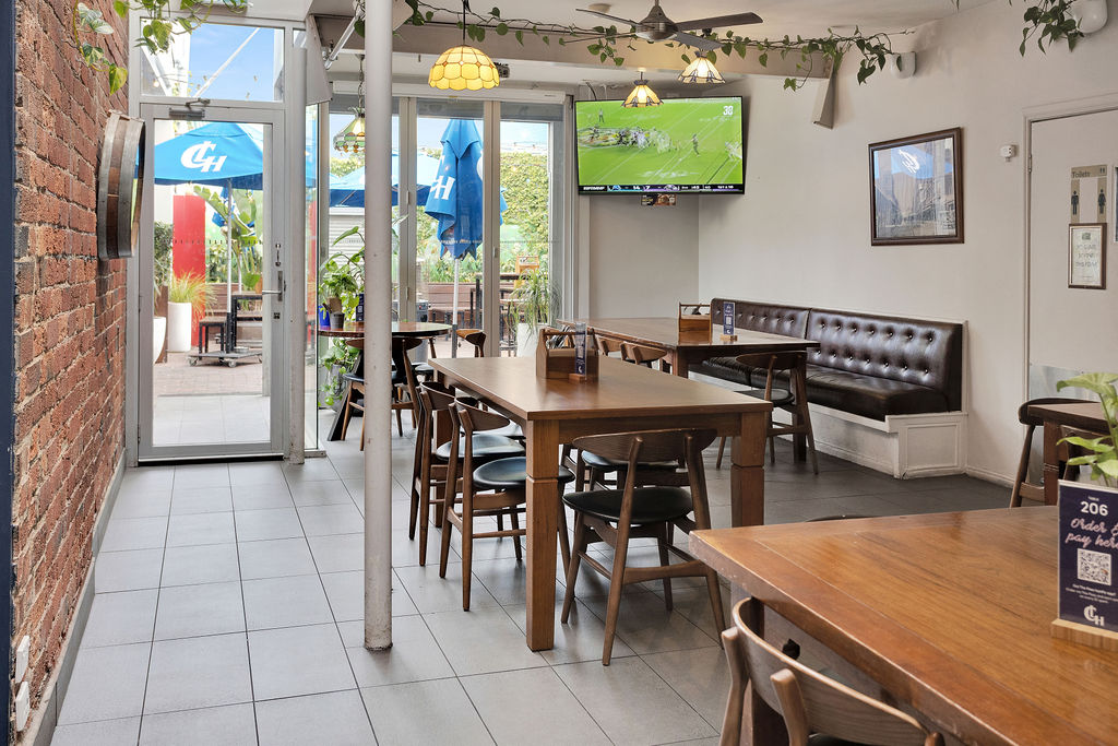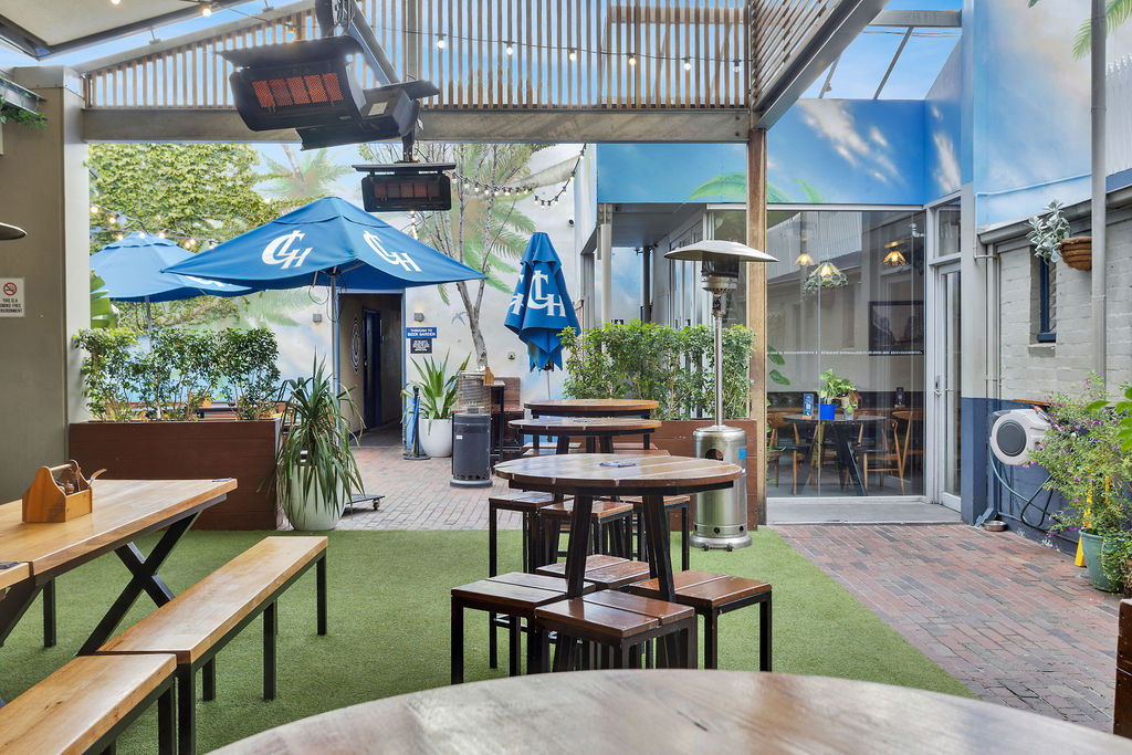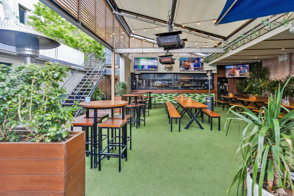 The Courtyard Bar boasts a private bar. dining & cocktail area; ideal for large groups. Including a high retractable roof, this light-filled space is perfect for any occasion.